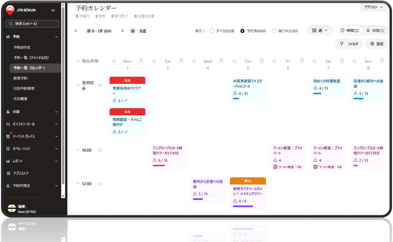 体験ツアーやアクティビティの予約枠・定員を、ガイドやスタッフの人数に合わせて柔軟に管理できます。予約可能数は、すべての販売チャネルにリアルタイムで反映されるため、ダブルブッキングの心配がありません。